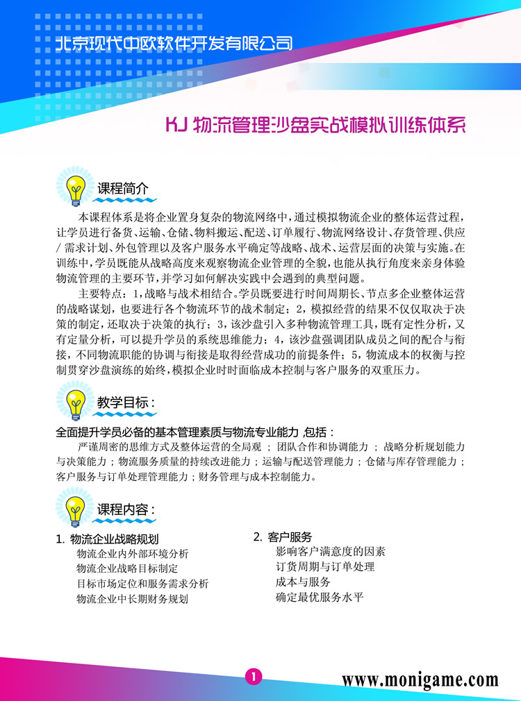 本沙盤體系集情景模擬、案例分析、角色扮演和專家診斷為一體,新穎的參與式教學(xué)、強(qiáng)烈的競(jìng)爭(zhēng)場(chǎng)景設(shè)計(jì),克服了以往枯燥、繁雜的人力資源灌輸式教學(xué)的弱點(diǎn),能夠最大程度地激發(fā)學(xué)員興趣,達(dá)到在攻克難題、糾正錯(cuò)誤中學(xué)習(xí)的目的。它實(shí)用性強(qiáng),印象深刻,受訓(xùn)后行為改變的效果十分明顯。